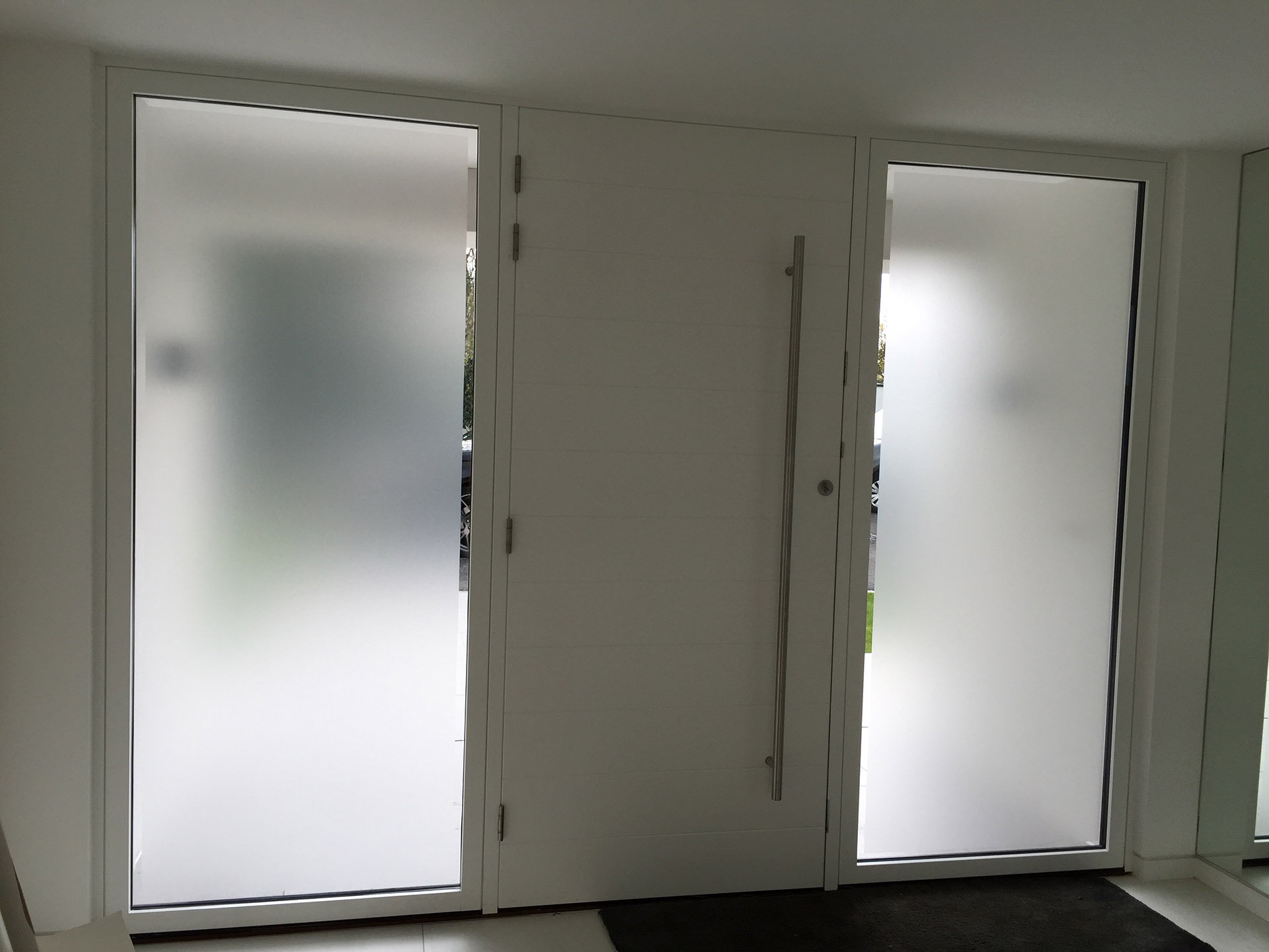 Frosted window film installation.